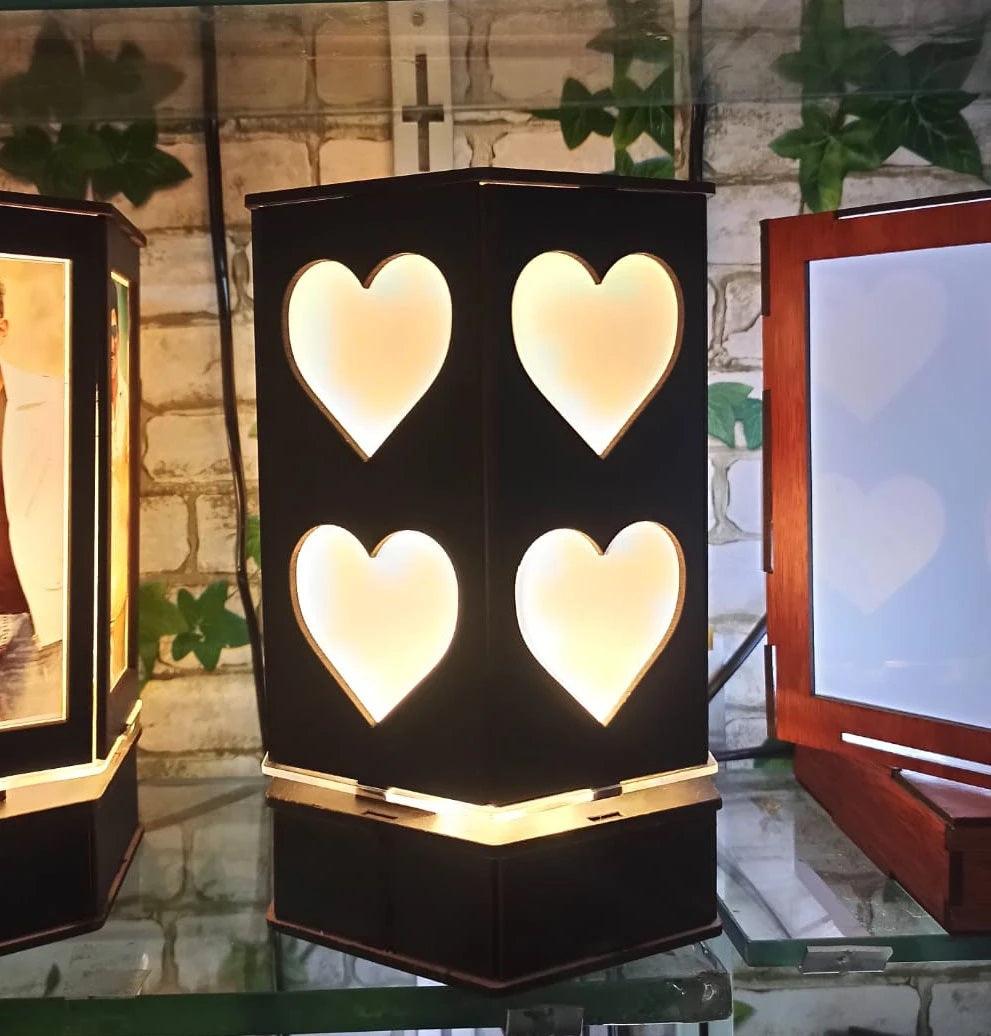 Gift for birthday, anniversary, returns gift, Valentine gift for girlfriend. Personalize printed photo frame with your personal photo and small wishes. Customized LED Table Lamps with 12 Personalized Photo Frames Rotating lamp